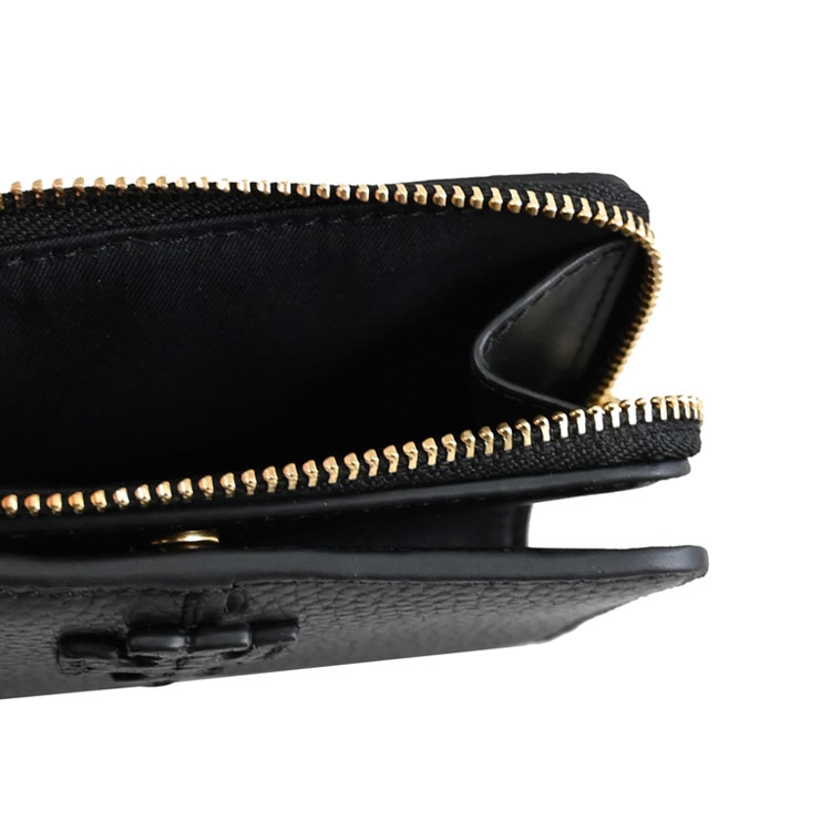 美國紐約時尚品牌 TORY BURCH(托里.伯奇) 來自於美國輕奢品牌,是近年來討論度極高的熱門精品品牌,鮮明大膽色彩表現,一眼看出這品牌LOGO設計;此款是專櫃熱銷經典短夾系列,經典LOGO搭配荔枝皮革材質,對開釦式/內有6信用卡夾層+2貼袋+1鈔票夾層+1拉鍊零錢袋,整體簡約又實用,是款都會時尚的單品配件。