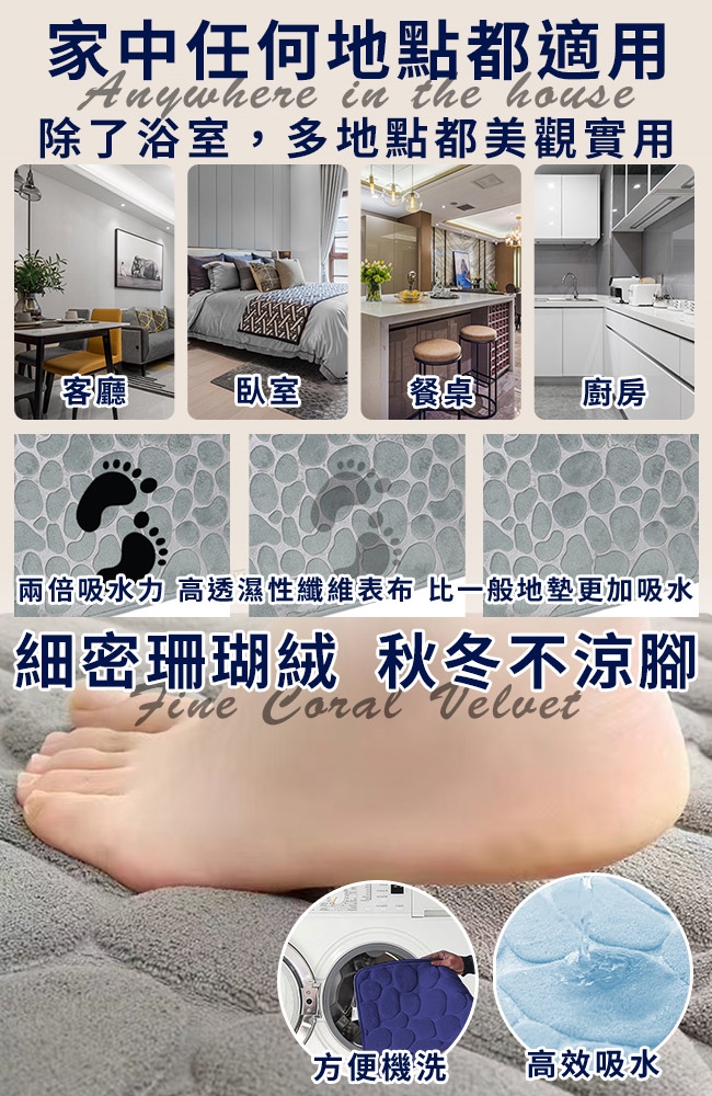 ◆吸水性佳,浴後左右蹭,即可乾爽,秋冬不涼腳