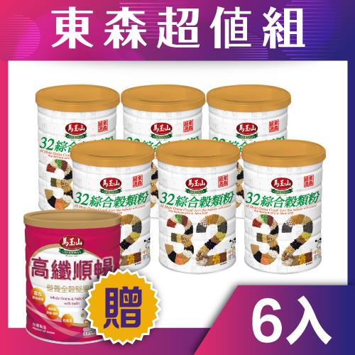 馬玉山 東森嚴選32綜合穀類粉450g*6罐+贈營養全穀堅果奶-高纖順暢配方850g(鐵罐)*1罐