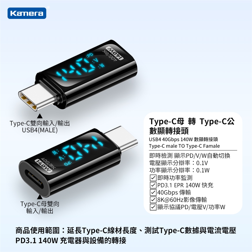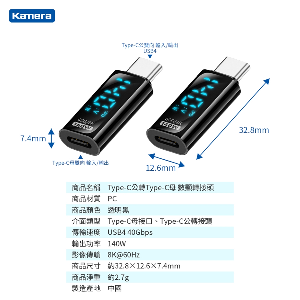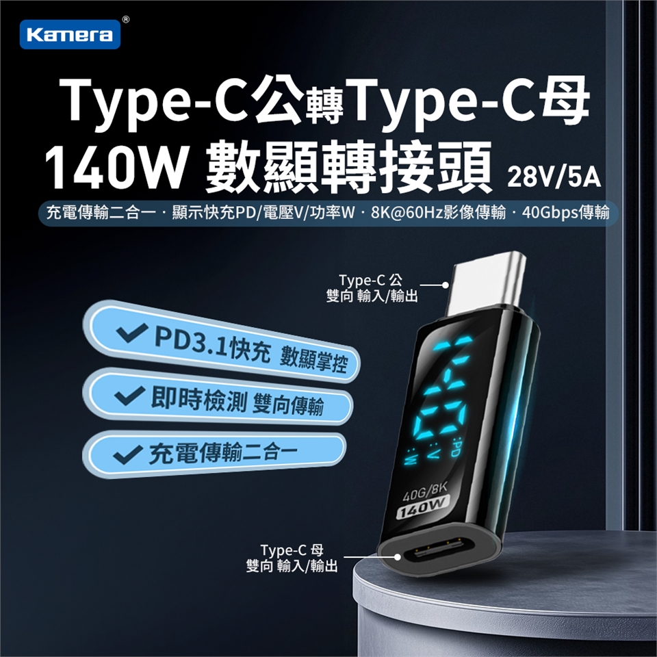品名:Type-C公轉Type-C母 數顯轉接頭-140W28V5A