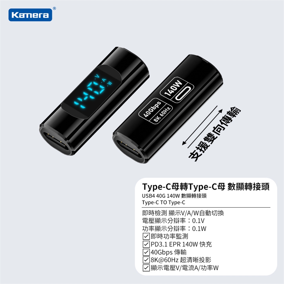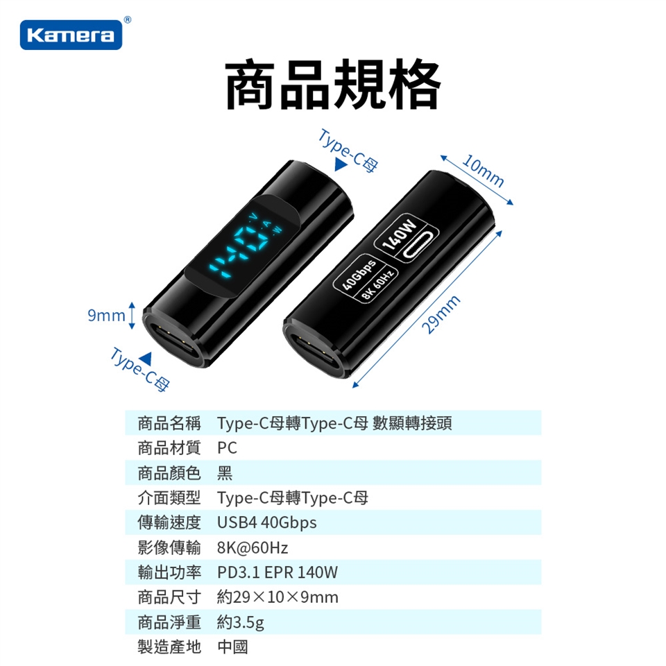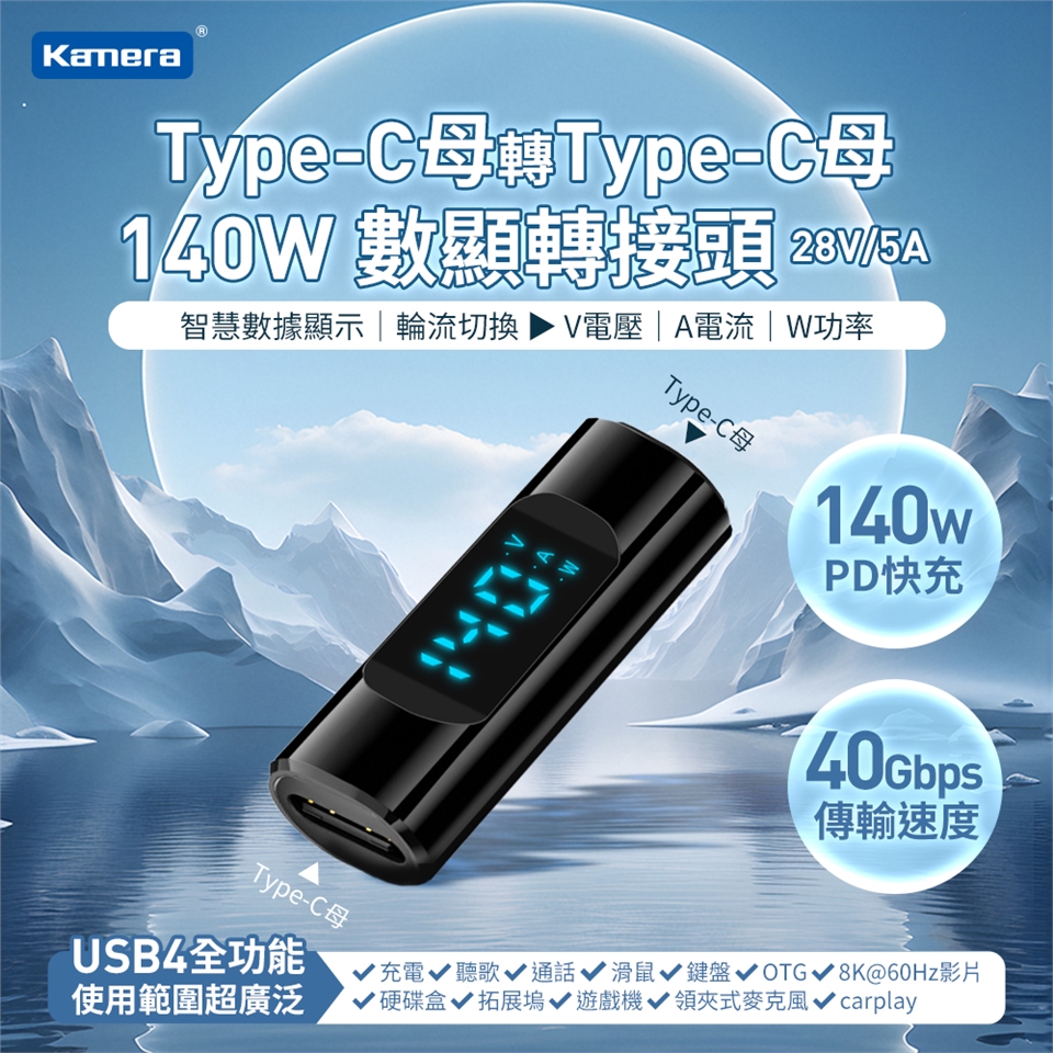 品名:Type-C母轉Type-C母 數顯轉接頭-140W/28V/5A