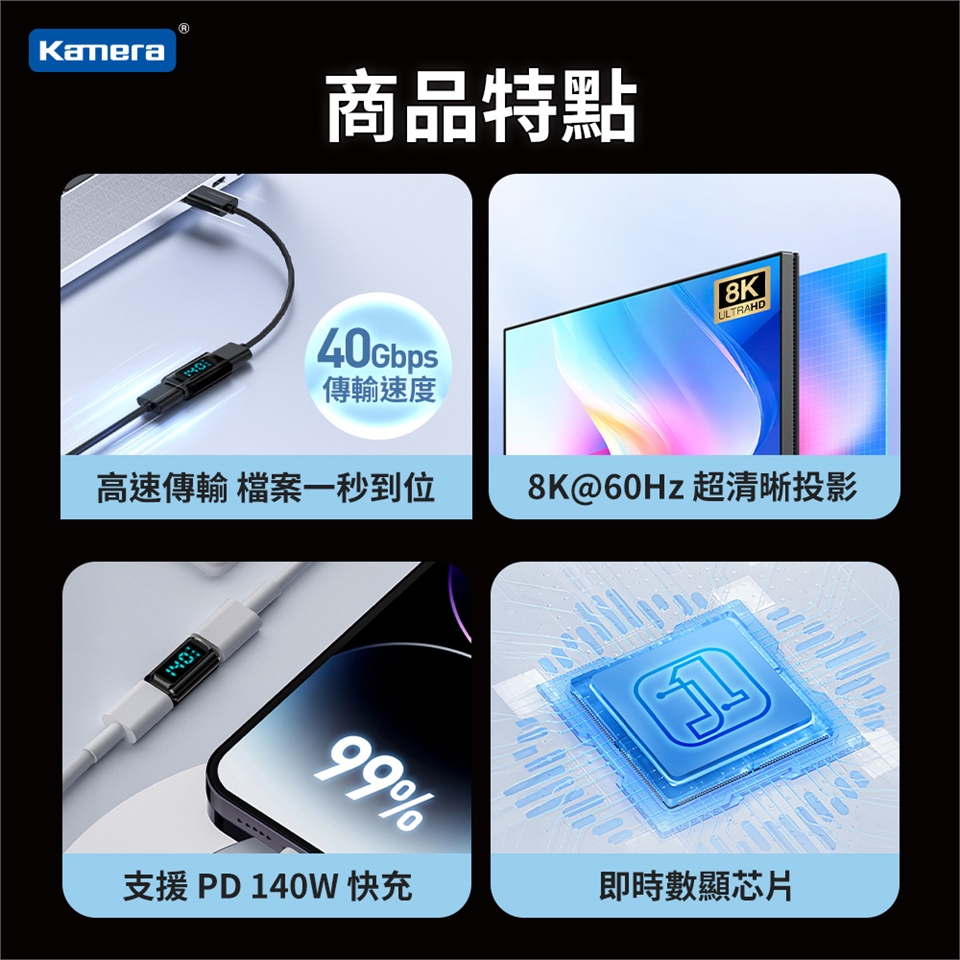 2. 全功能USB 4.0,傳輸速率40Gbps、支援8K@60Hz影像傳輸。
