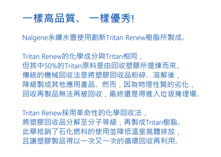 - 採用新Tritan Renew製成,節能環保的新選擇