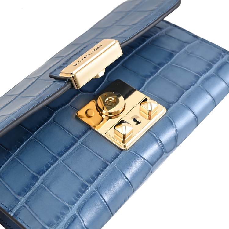 MICHAEL KORS 品牌(簡稱MK)成立於 1981 年是美國設計師同名的品牌;專櫃商品,專櫃款,此款為熱賣高人氣WOC斜背晚宴包,採用金屬釦LOGO與鱷魚壓紋皮革,翻蓋開口/內有8卡夾層+1貼袋+外1貼袋供收納,內可放6.7吋手機,斜背帶可拆當手拿晚宴包使用,出遊無負擔的包款,兼具典雅時尚氣質。