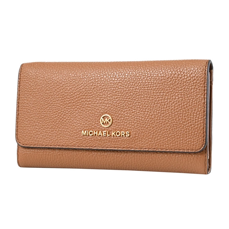 MICHAEL KORS 品牌(簡稱MK)成立於 1981 年是美國設計師同名的品牌;此款是專櫃熱銷新版三折長夾,採用印花皮革拼接材質搭配浮雕LOGO設計,扣式開口/內16信用卡夾+1透明名片夾+4貼袋+外1零錢袋,輕薄好收納,可輕易放入小包或口袋,簡約時尚又實用。