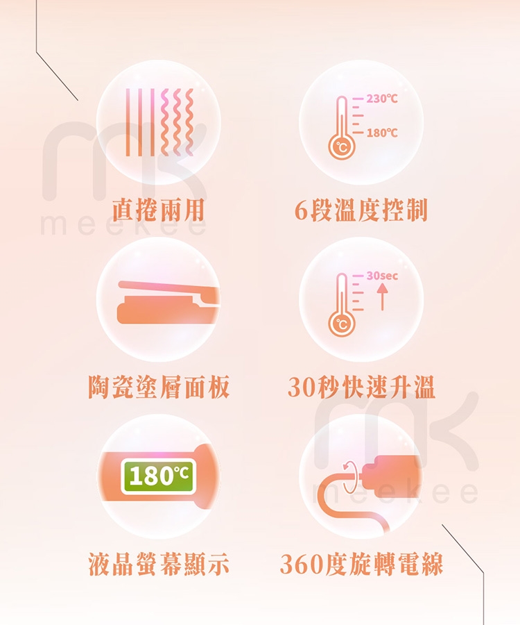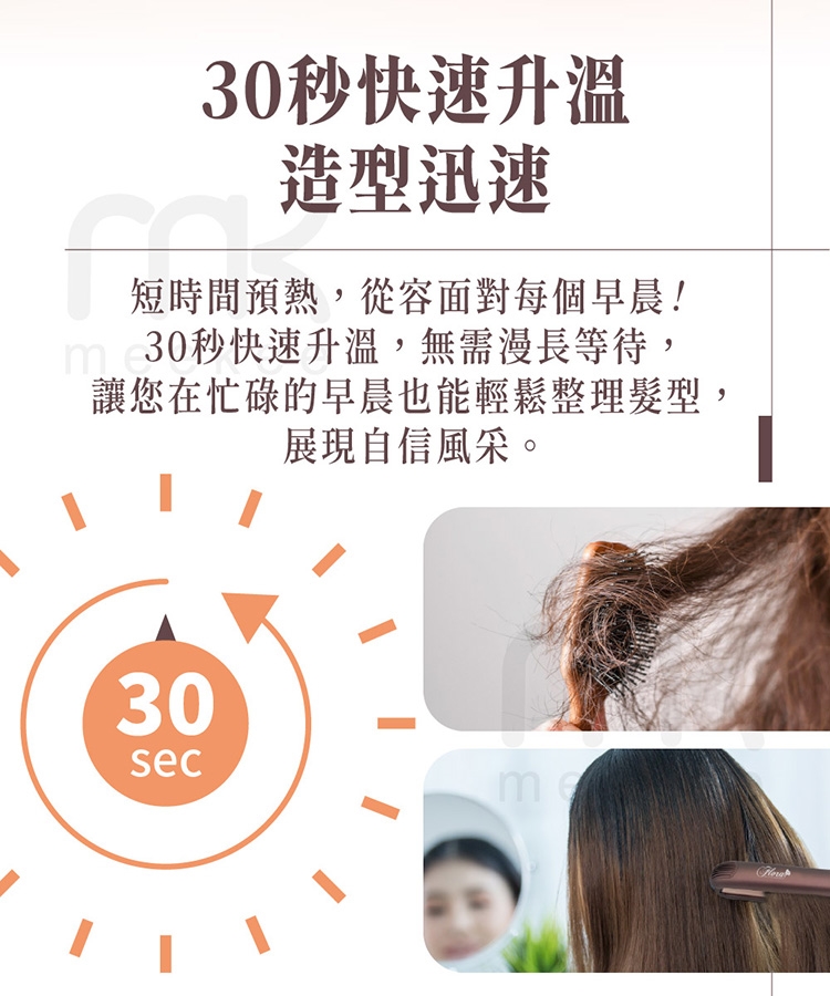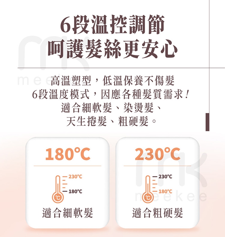 ●六段控溫加熱快,直捲造型快速打理
