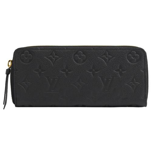 Louis Vuitton LV M60171 Clemence 經典牛皮壓花ㄇ字拉鍊長夾.黑