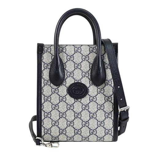 GUCCI 671623 Interlocking 皮標LOGO印花皮革兩用紙袋包.深藍