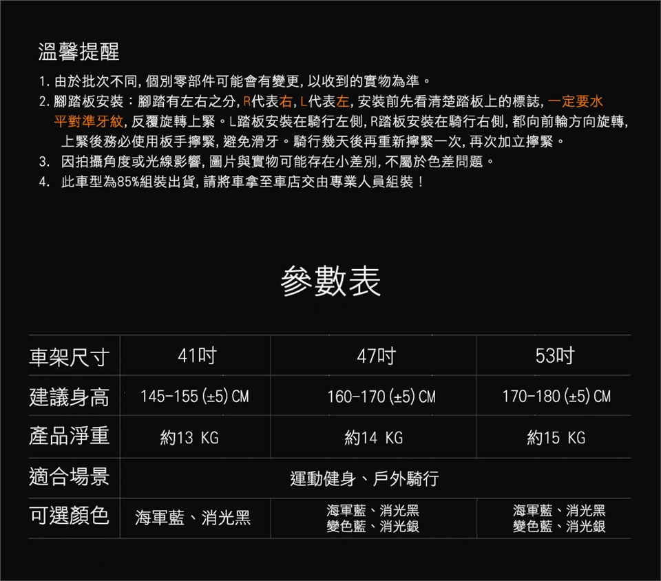 *請注意鑑賞期非試用期,若收到商品經檢察時發現有瑕疵或有任何疑慮時請勿騎乘使用。