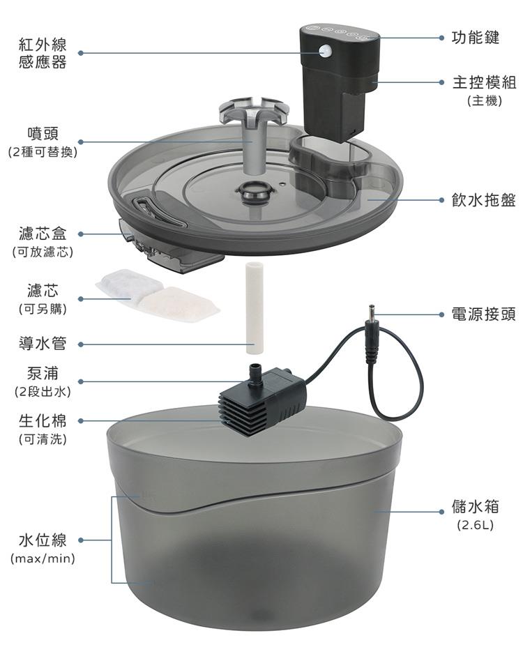 貓本屋 無線智能感應寵物飲水機,紅外線感應主控模組