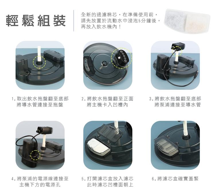 ※建議每個月更換一次全新的濾芯,若有多隻寵物共用飲水機,則請增加清洗與更換的頻率。