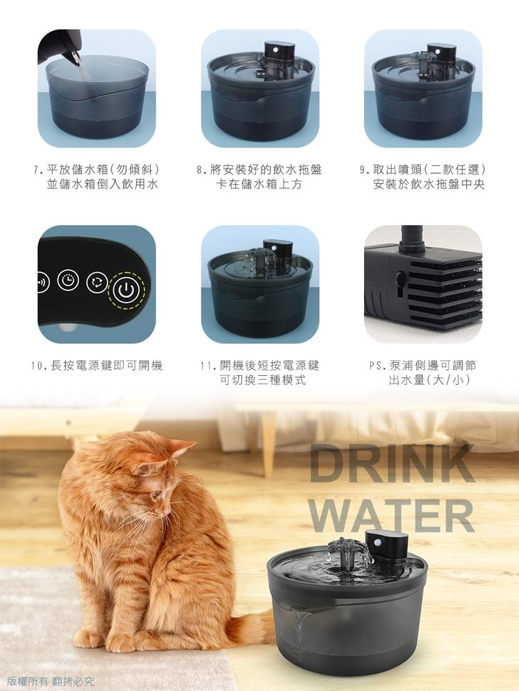 .請放置於平穩位置,避免寵物飲水機過於傾斜而造成水盤內的水溢出。
