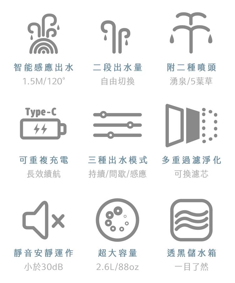 三種模式(感應/間歇/持續)+雙噴頭+可調節出水量(大/小)