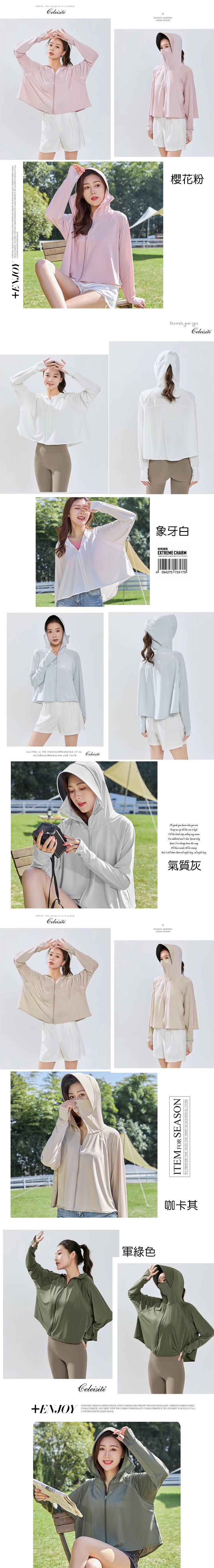 名稱:親膚冰絲輕薄不悶熱透氣黑膠帽圍防曬外套-D