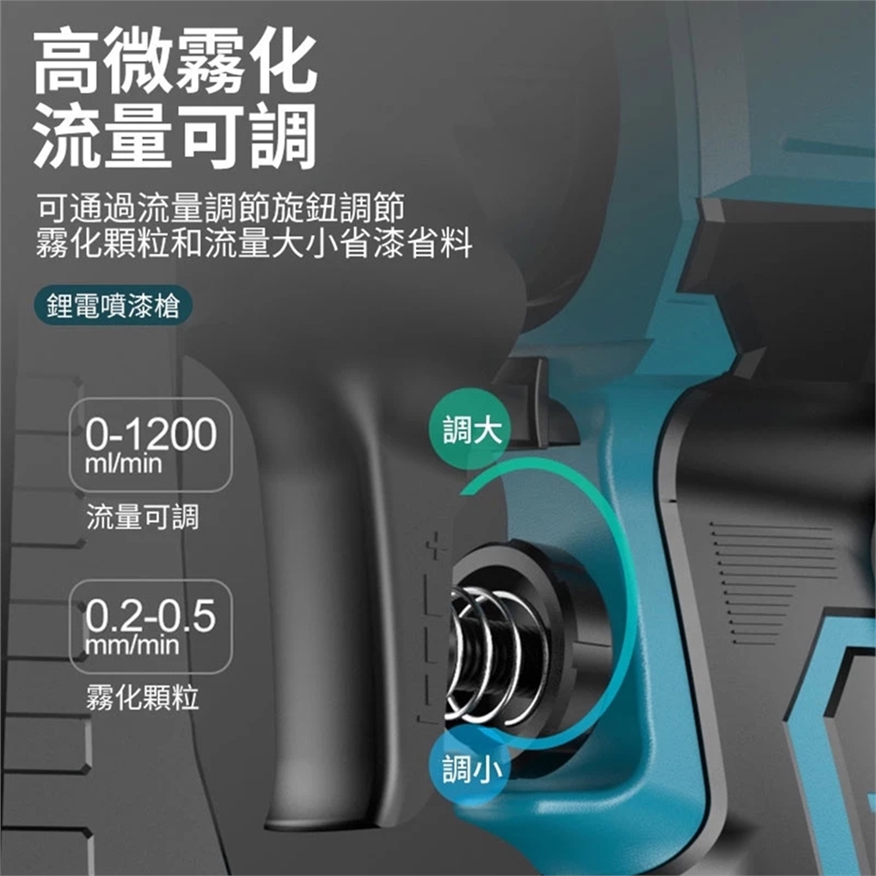 可通過流量調節旋鈕調節 霧化顆粒和流量大小省漆省料