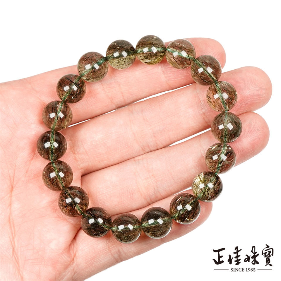 綠碧髮晶 頂級滿絲透體 10.8-11.3mm 綠碧髮晶手珠