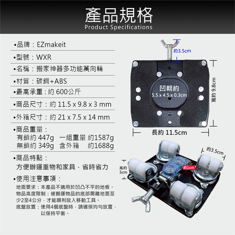 名稱 : 搬家神器多功能萬向輪