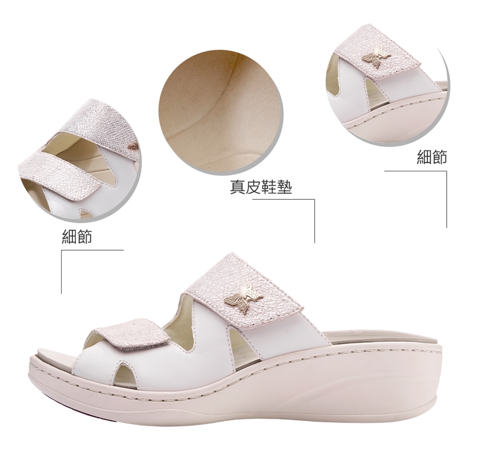 Kimo專利足弓支撐-金絲羊皮魔鬼氈健康涼拖鞋 女鞋 (奶茶杏 KBESF170127)