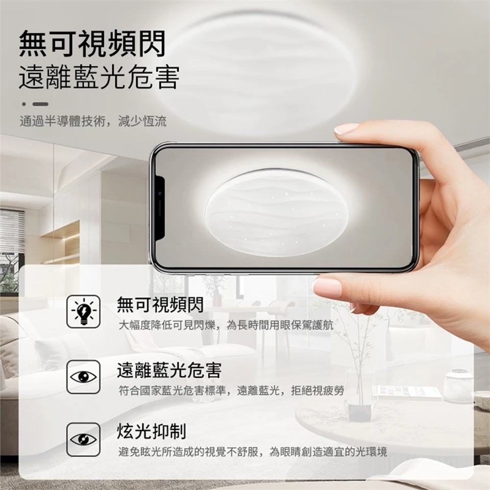 精選航空級,燈身輕盈堅固強度高。智能護眼吸頂燈防腐防生銹
