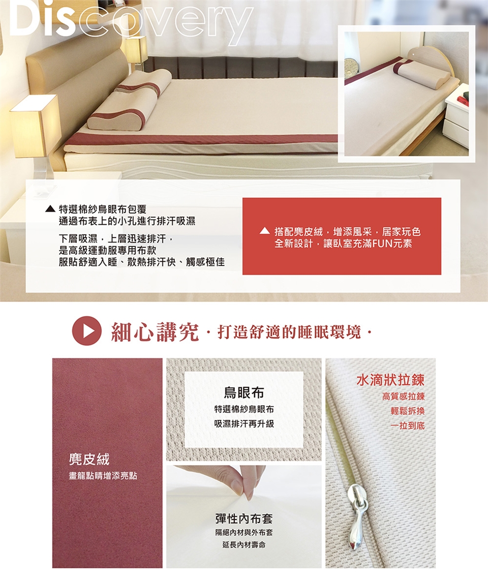 ◆洗滌方式:床墊內材不可曝曬、不可水洗;布套建議單獨洗滌並反過來後使用洗衣袋。