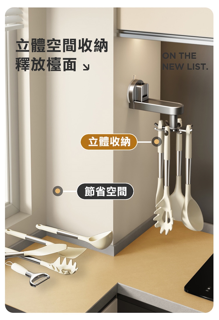 【COMET】廚房吸盤旋轉掛鉤(多功能掛鉤收納 勺子鍋鏟收納架 廚具置物架 免打孔掛架 廚具收納/5C03Q1)