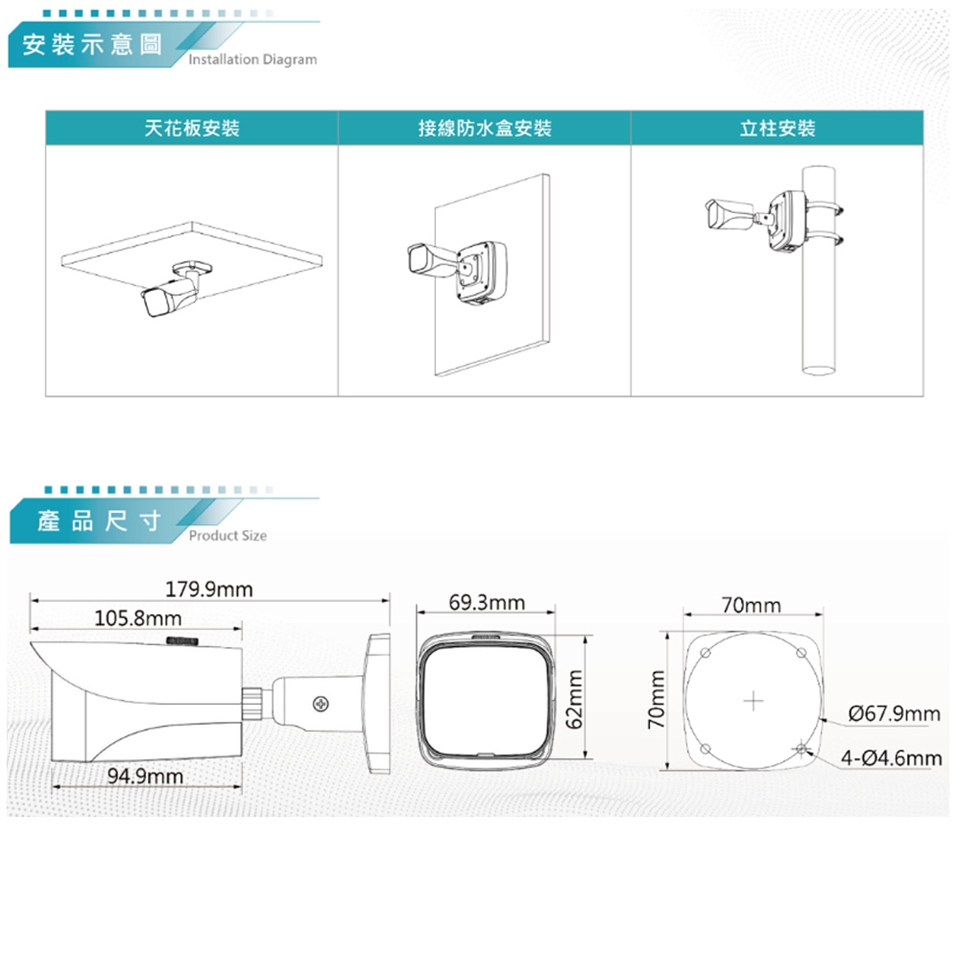 DC12V / IP67 / 內建麥克風