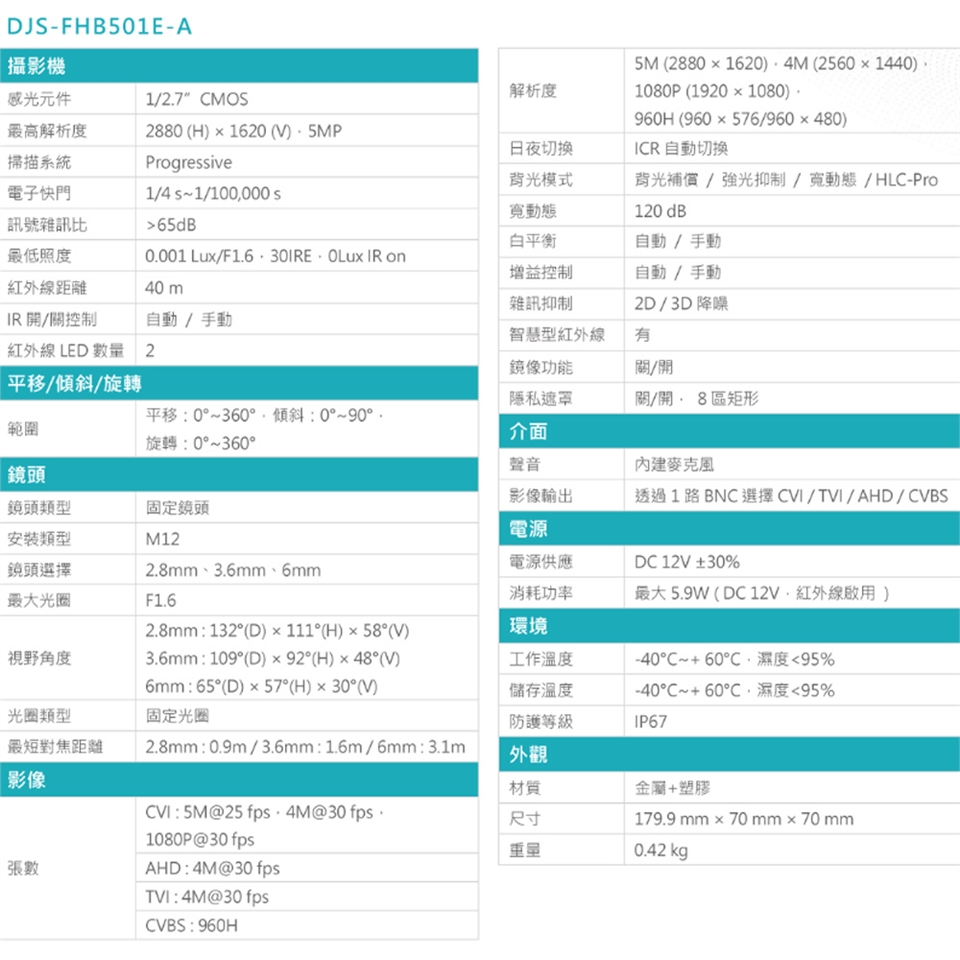 最大 25 fps@5MP(16 : 9 影像輸出)