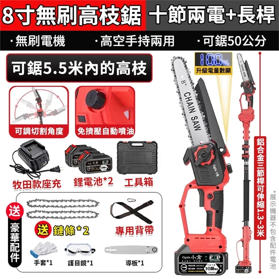 名稱:8寸免安裝無刷數顯高枝鋸