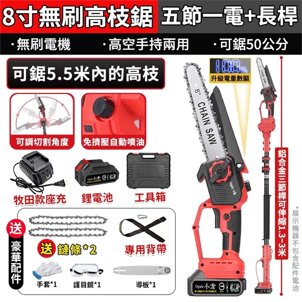 名稱:8寸免安裝無刷數顯高枝鋸