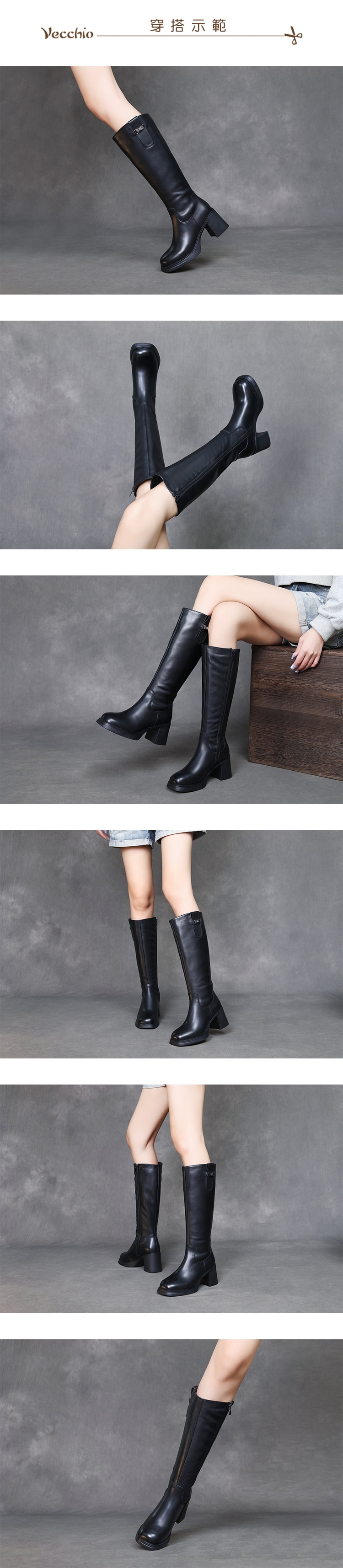【VECCHIO】真皮絨裡粗跟美腿長筒騎士靴/真皮頭層牛皮保暖絨裡粗跟美腿效果長筒騎士靴 女鞋 黑