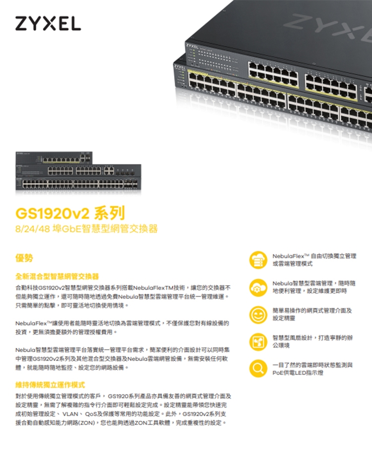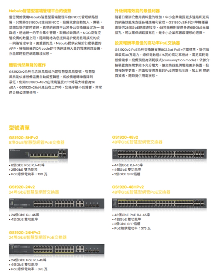 每埠供電30W,總供電瓦數達130W或375W兩種選擇。非常適合有高密度PoE供電設備安裝需求的環境,智慧供電模式可自動檢測每台電力設備的用電量狀態,並提供恰好足瓦的電力。