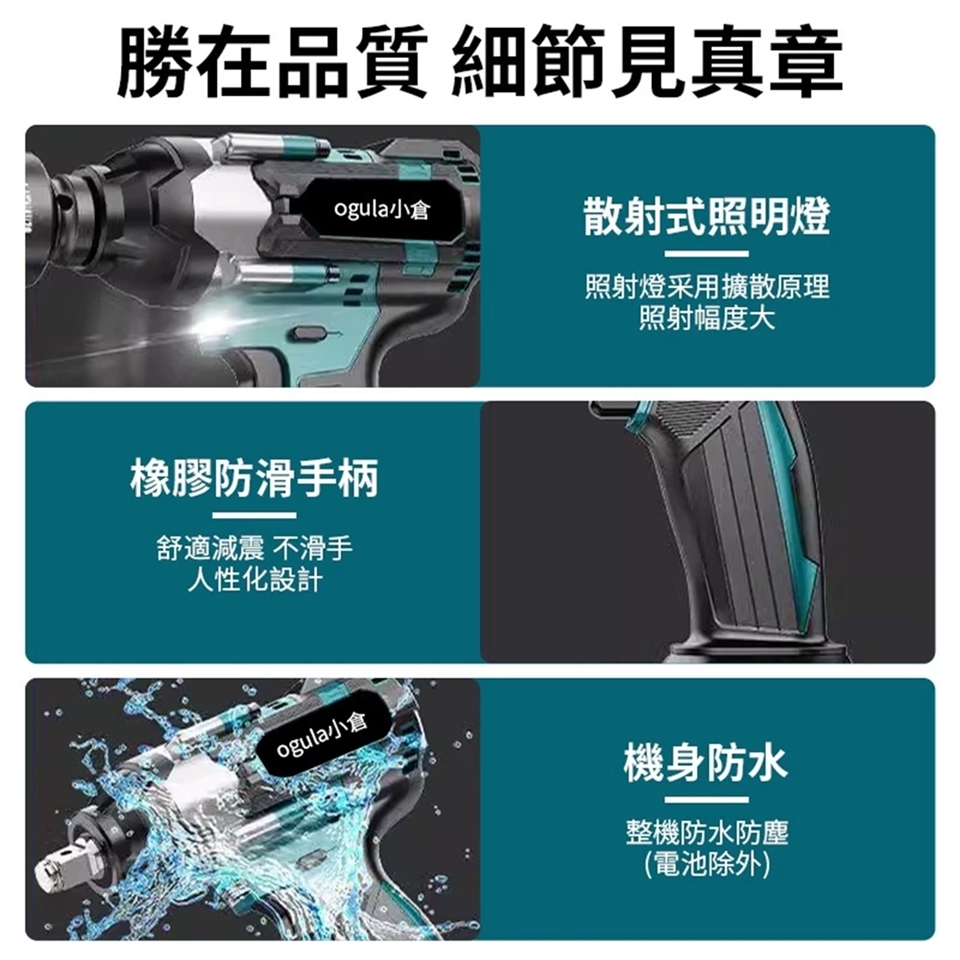 搭配不同夾頭/轉頭/套筒 各場景輕鬆使用 澎湃動力瞬間爆發 一秒打下螺絲