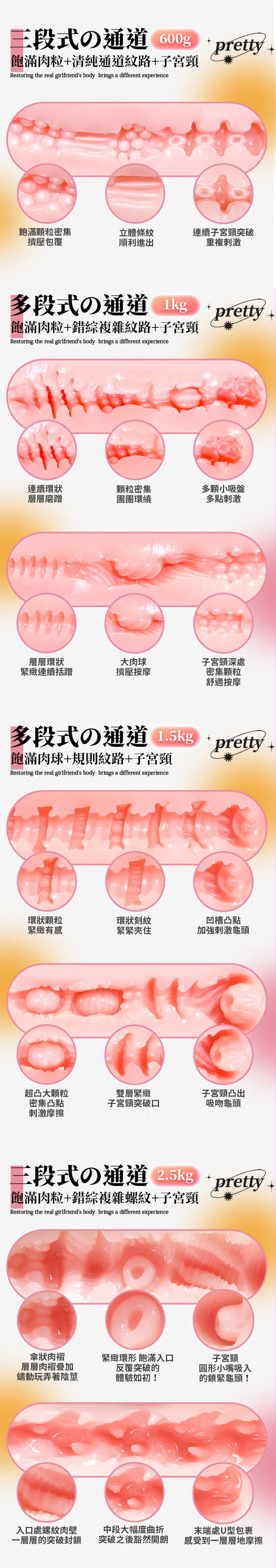 極致模擬:採用連續環狀設計,層層磨蹭模擬真實感受,顆粒密集的內部結構讓刺激層層遞增。