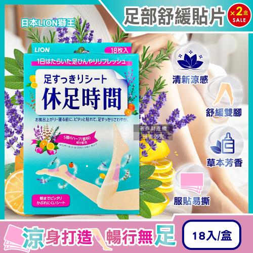 (2盒超值組)日本LION獅王-休足時間草本芬芳腳底腿部放鬆涼感舒緩貼片18入/綠盒(美腿輕盈舒足貼布,降溫散熱香氛美足貼,鐵腿專用清涼消暑)