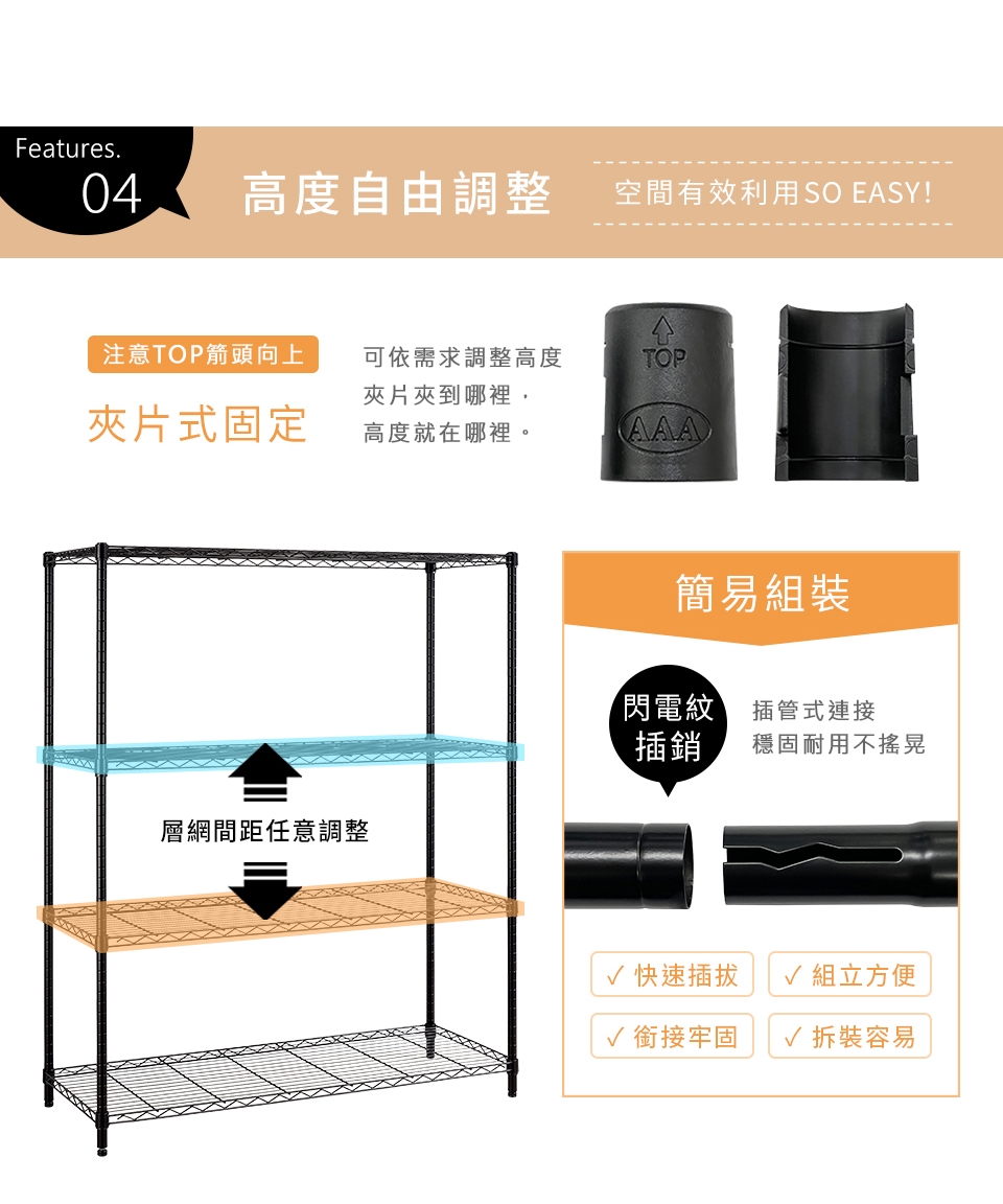 ✓ 層架間距可任意調整,讓你隨心所欲、自由規劃居家空間,輕鬆享受收納樂趣。