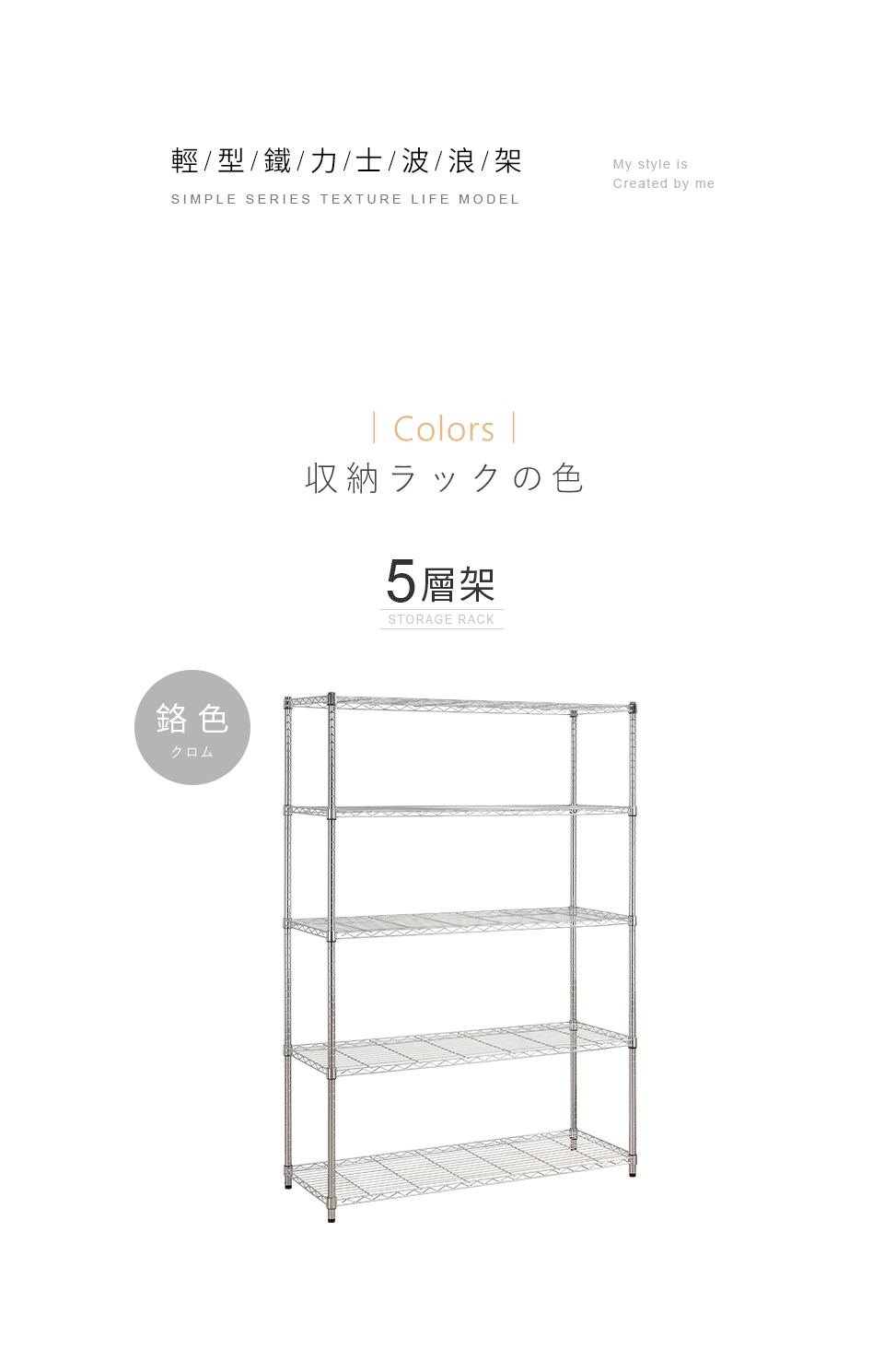 內容件數:輕型五層電鍍置物架x1,共1入/組