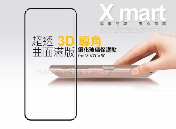 Xmart for VIVO V50 邊膠3D滿版曲面玻璃-黑