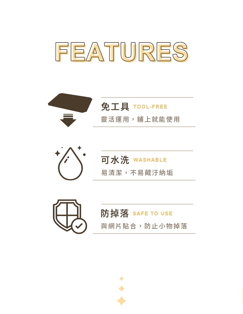 ✦ 水洗清潔! 不易藏汙納垢,保持層架乾淨如新。