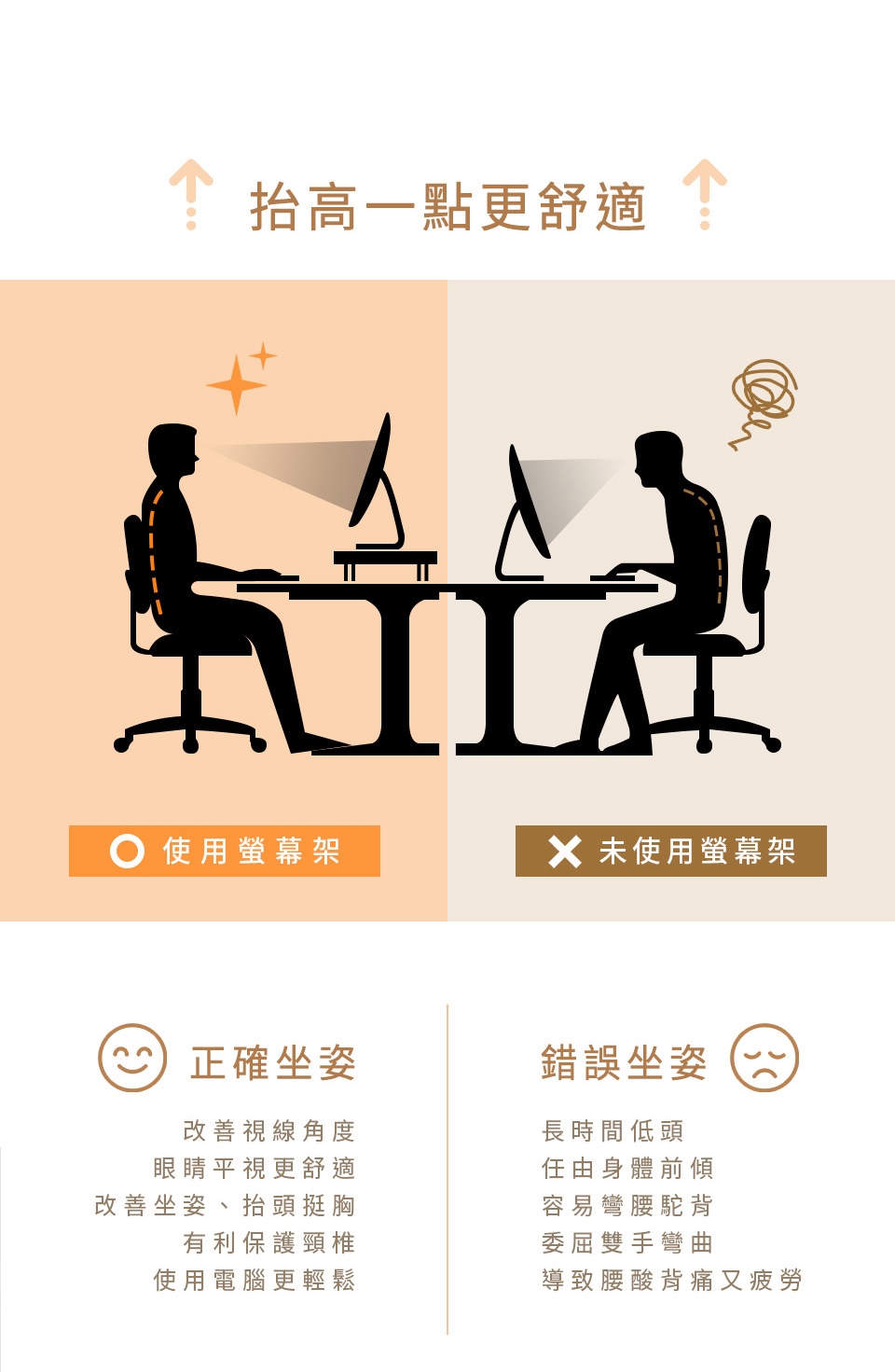 現在就抬高螢幕,改善工作視角,以最佳的角度觀看,讓你上班、做報告、玩遊戲都超舒適!