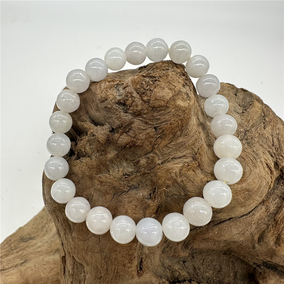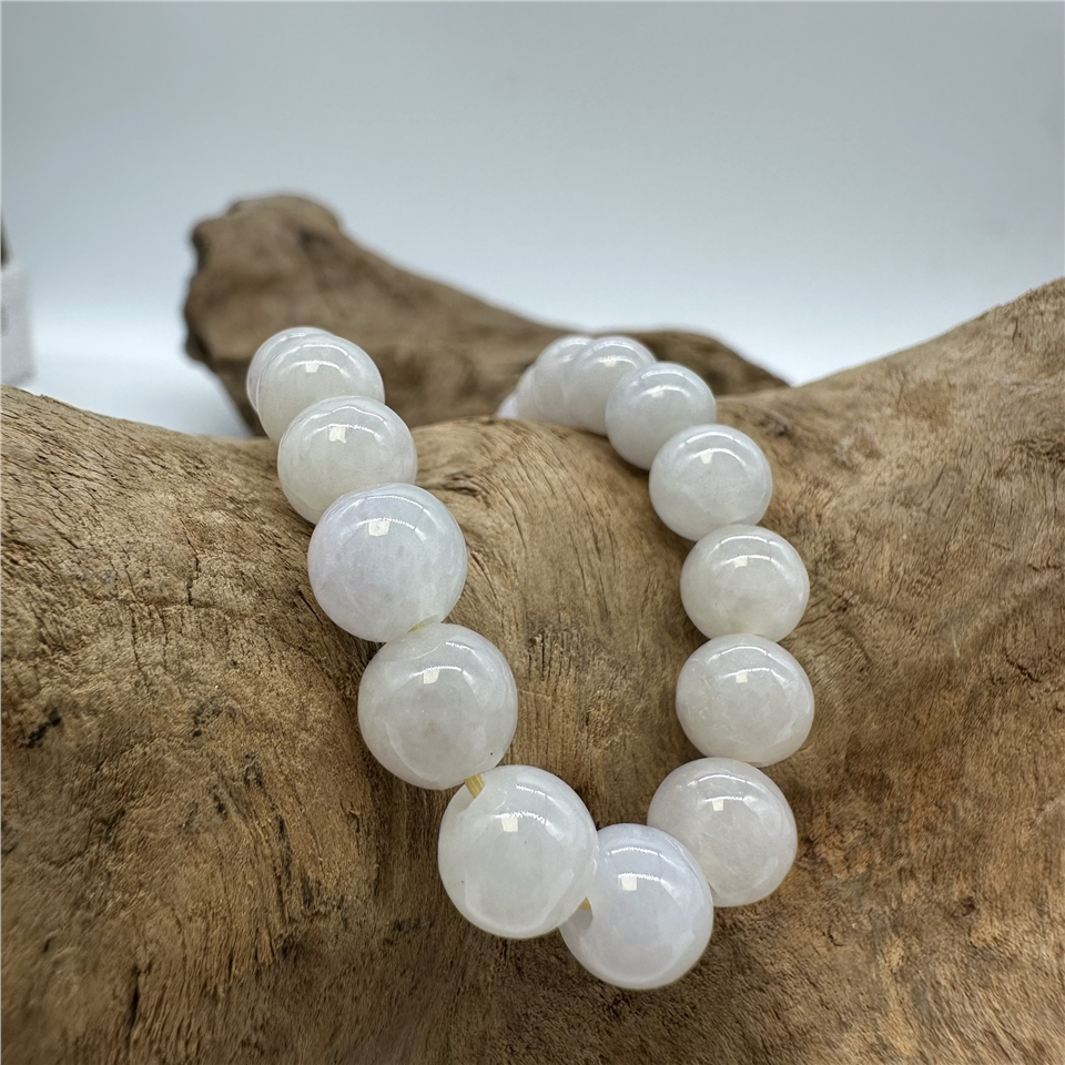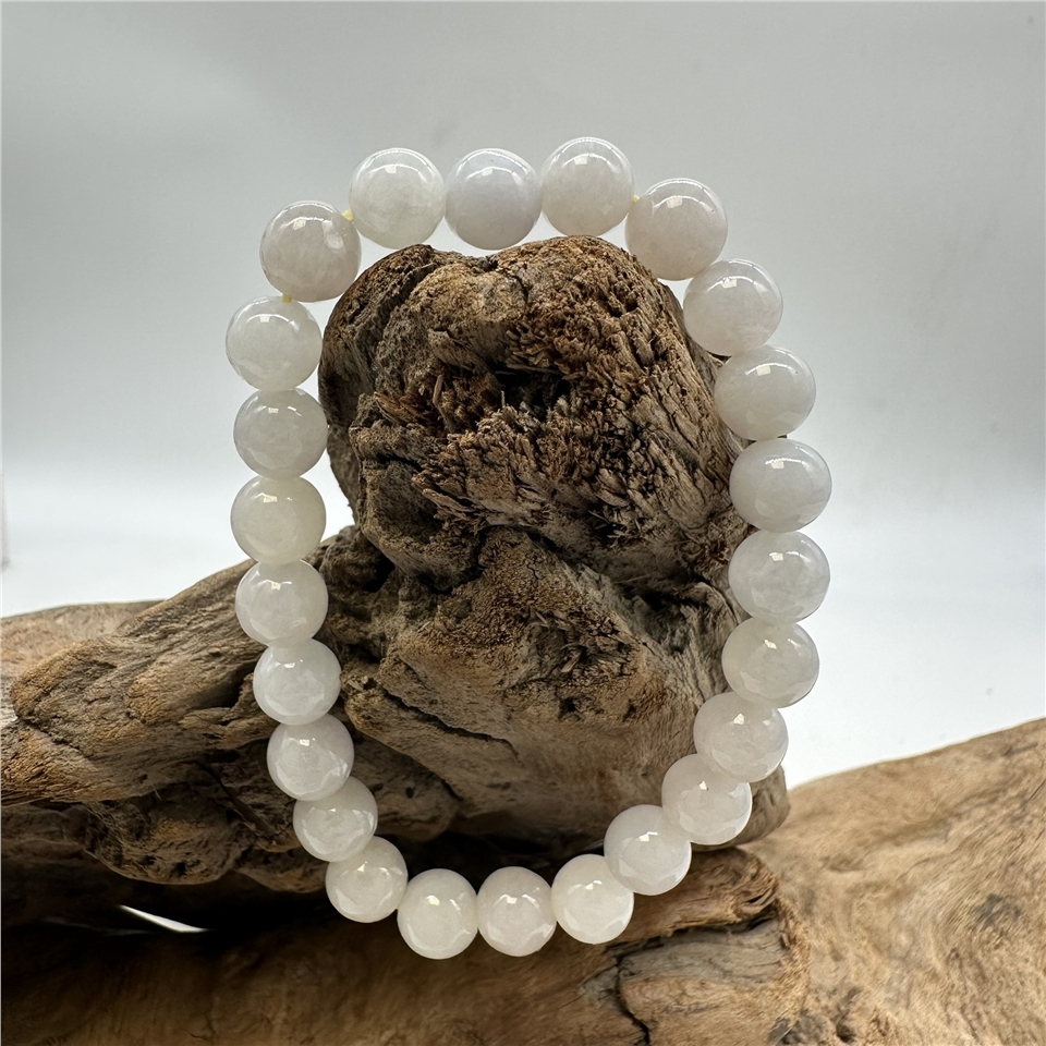 【肌容雪】緬甸天然A貨翡翠白冰翡翠單圈手串 編號576