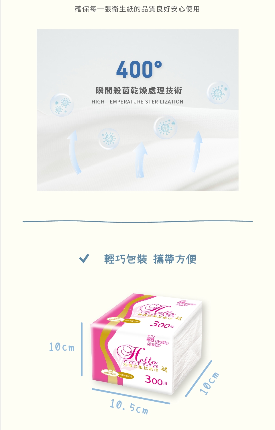 每一張都是經過400度高溫殺菌,讓您使用更安心。