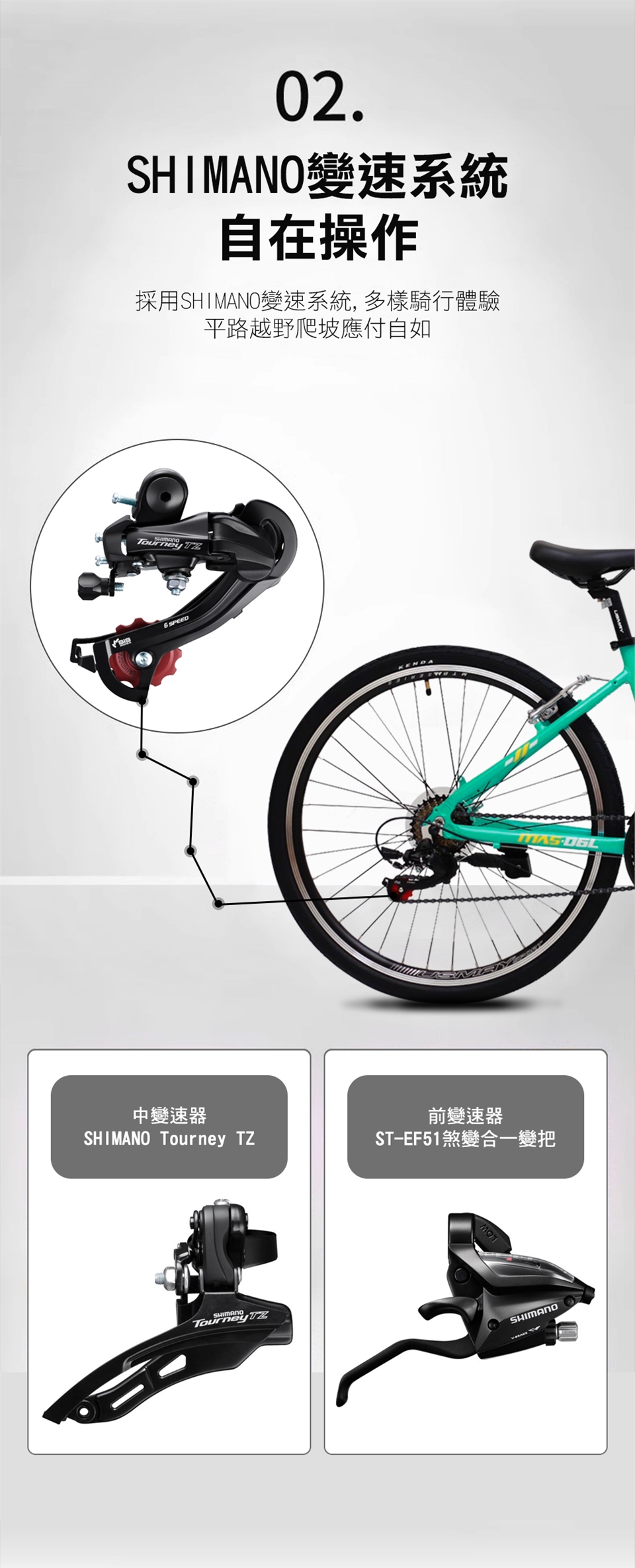 後變速器:SHIMANO Tourney TZ後變速器
