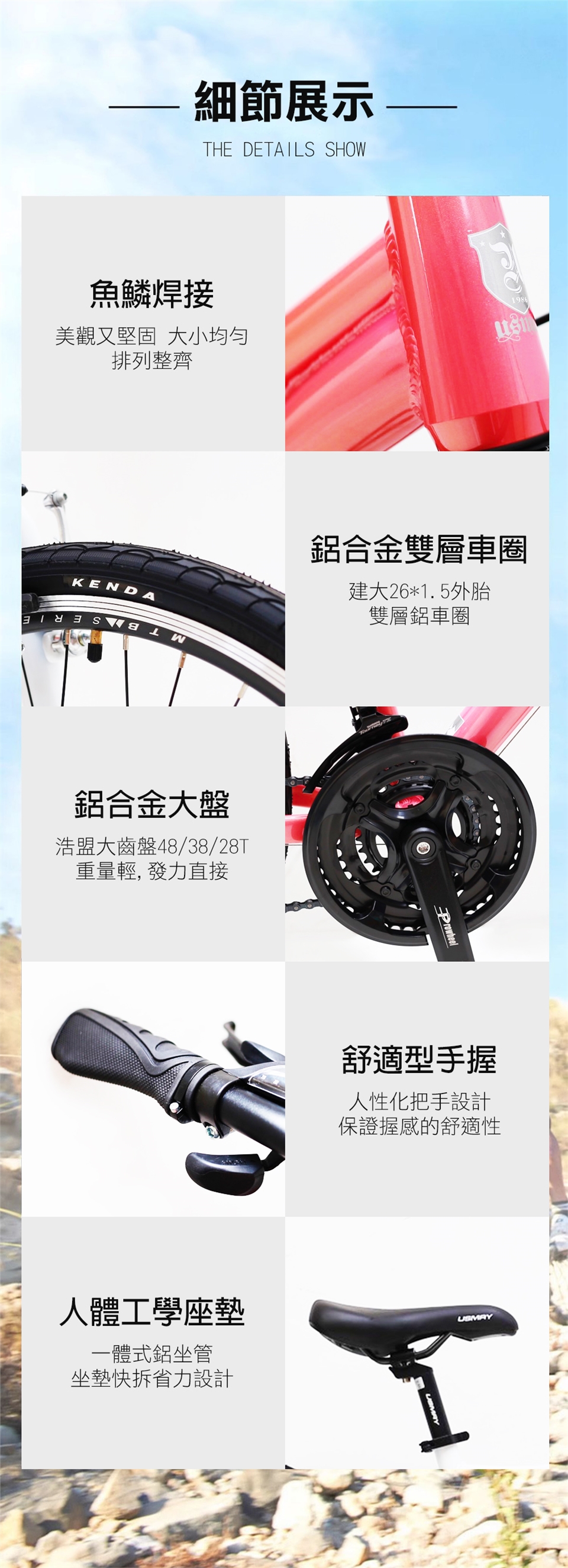 ★鋁龍頭:一體式鋁坐管 坐墊快拆省力設計