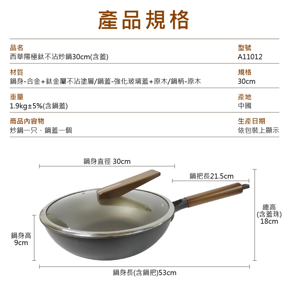 ◆品名:【SILWA 西華】陽極鈦不沾炒鍋30cm(含蓋)