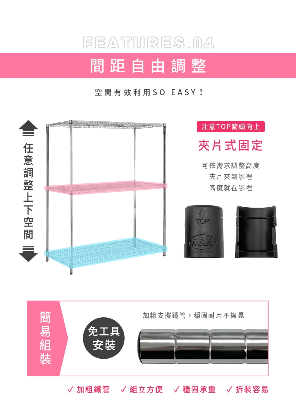 ✓ 層架間距可任意調整,讓你隨心所欲、自由規劃居家空間,輕鬆享受收納樂趣。
