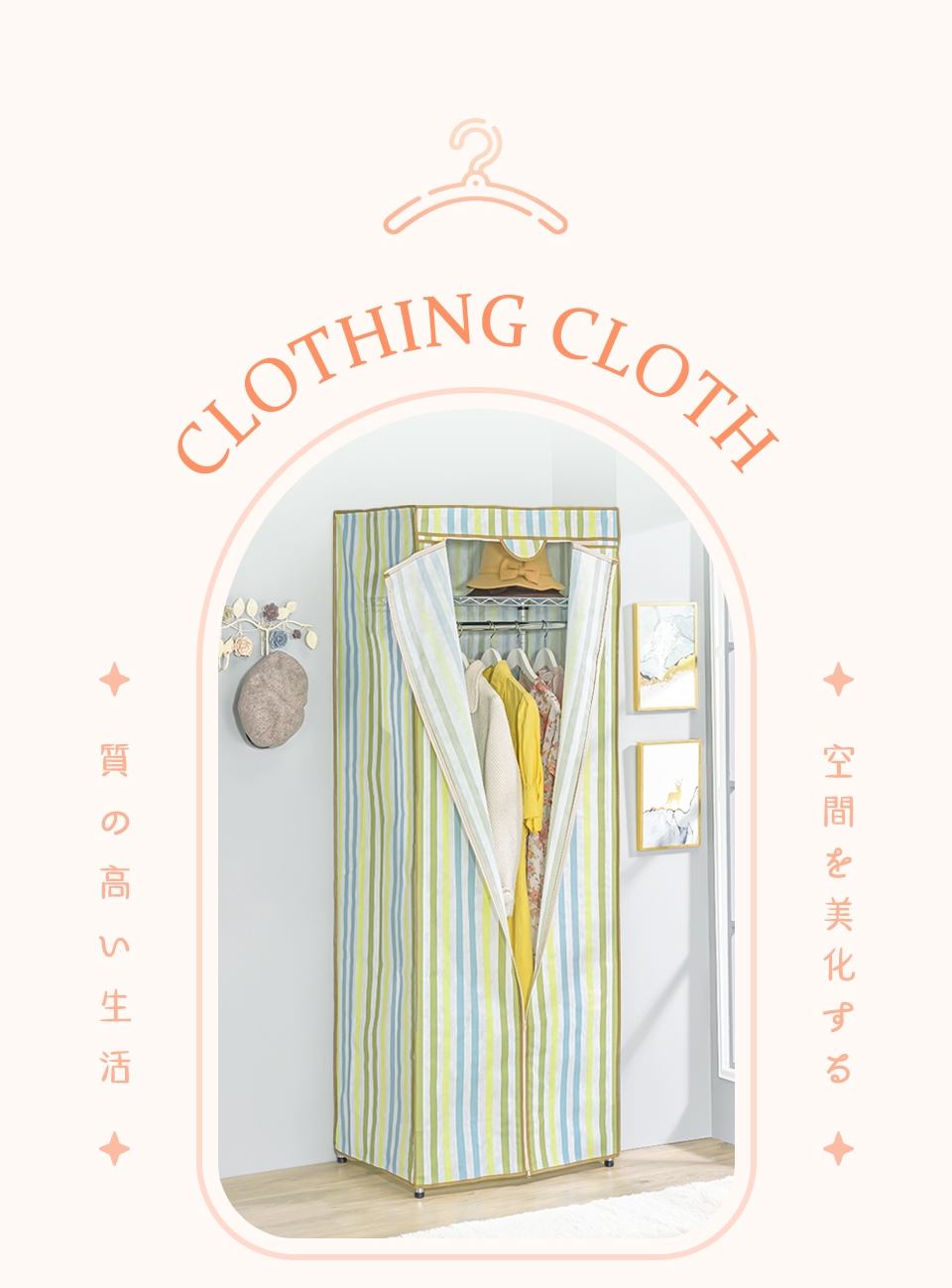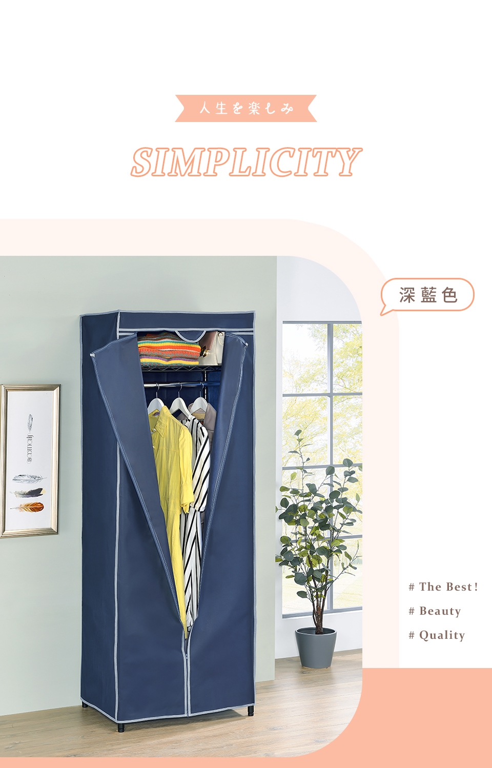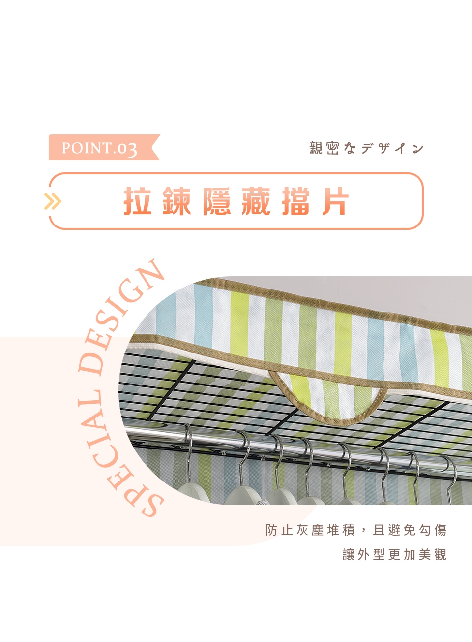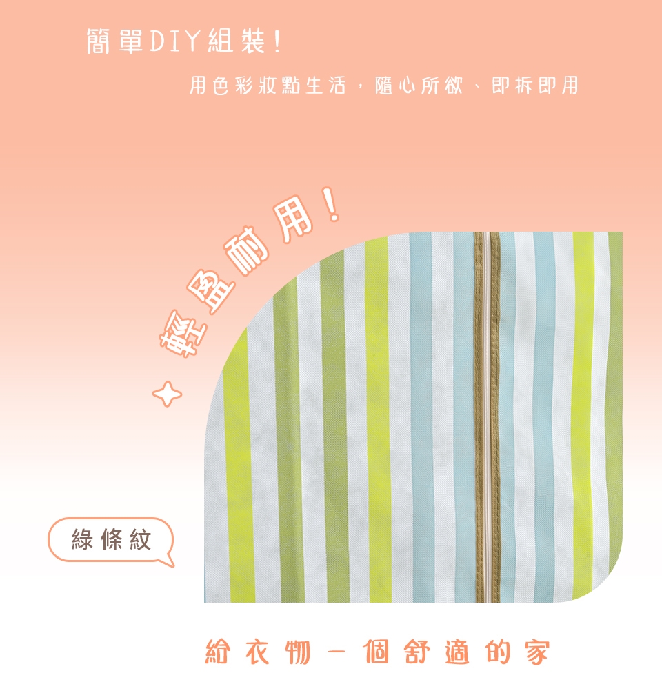衣櫥套完整包覆,保護衣物不沾塵,T字型全開式拉鍊設計,即開即用,拿取衣物超方便