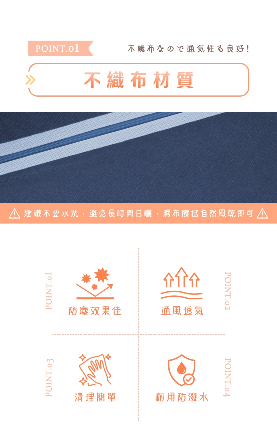 2. 採用輕薄透氣布料,非加厚款,適用於一般防塵需求,請避免強行拉扯,以免破損。