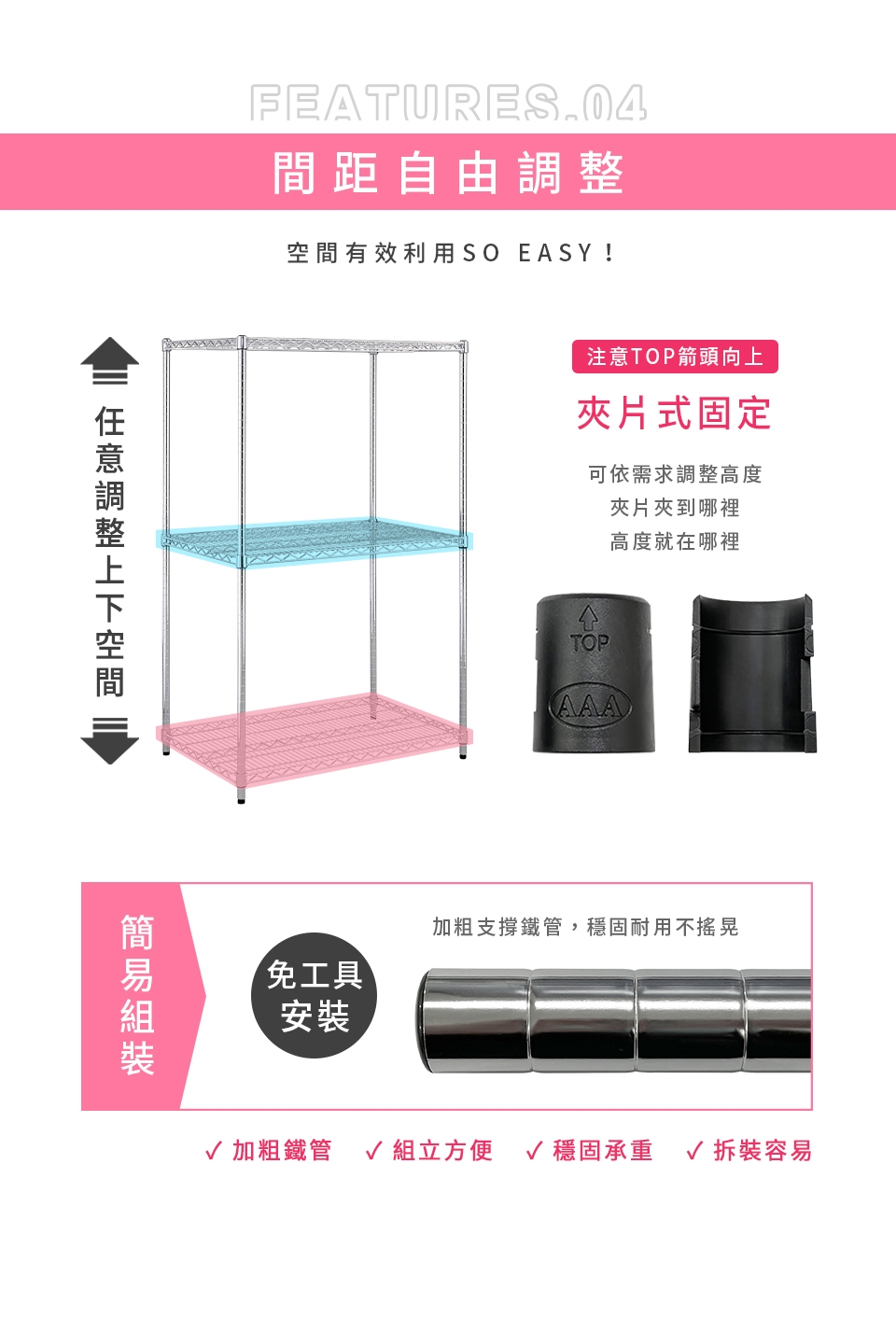 ✓ 層架間距可任意調整,讓你隨心所欲、自由規劃居家空間,輕鬆享受收納樂趣。