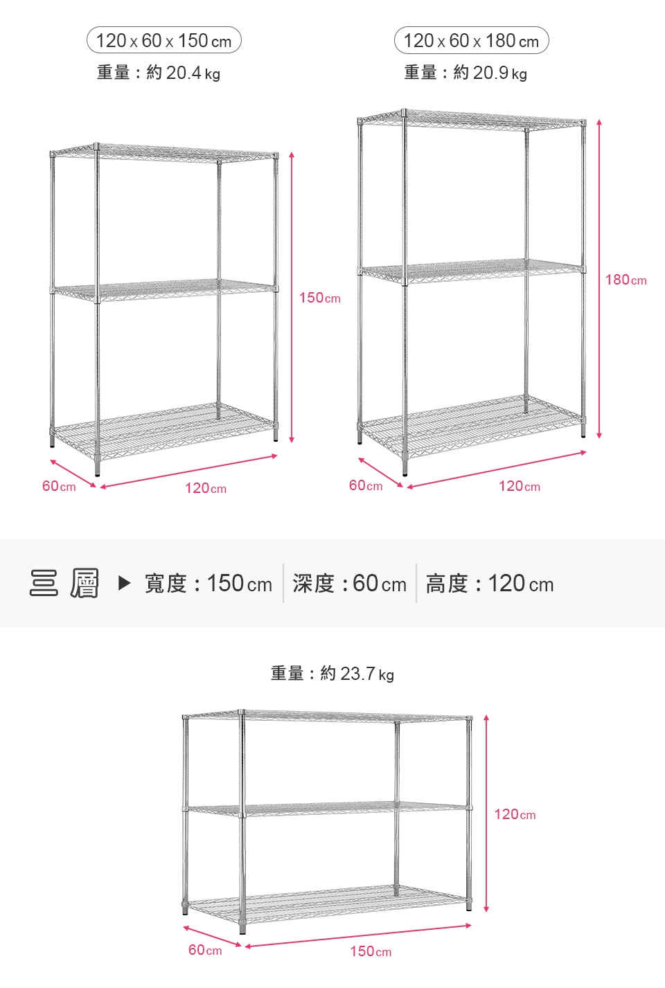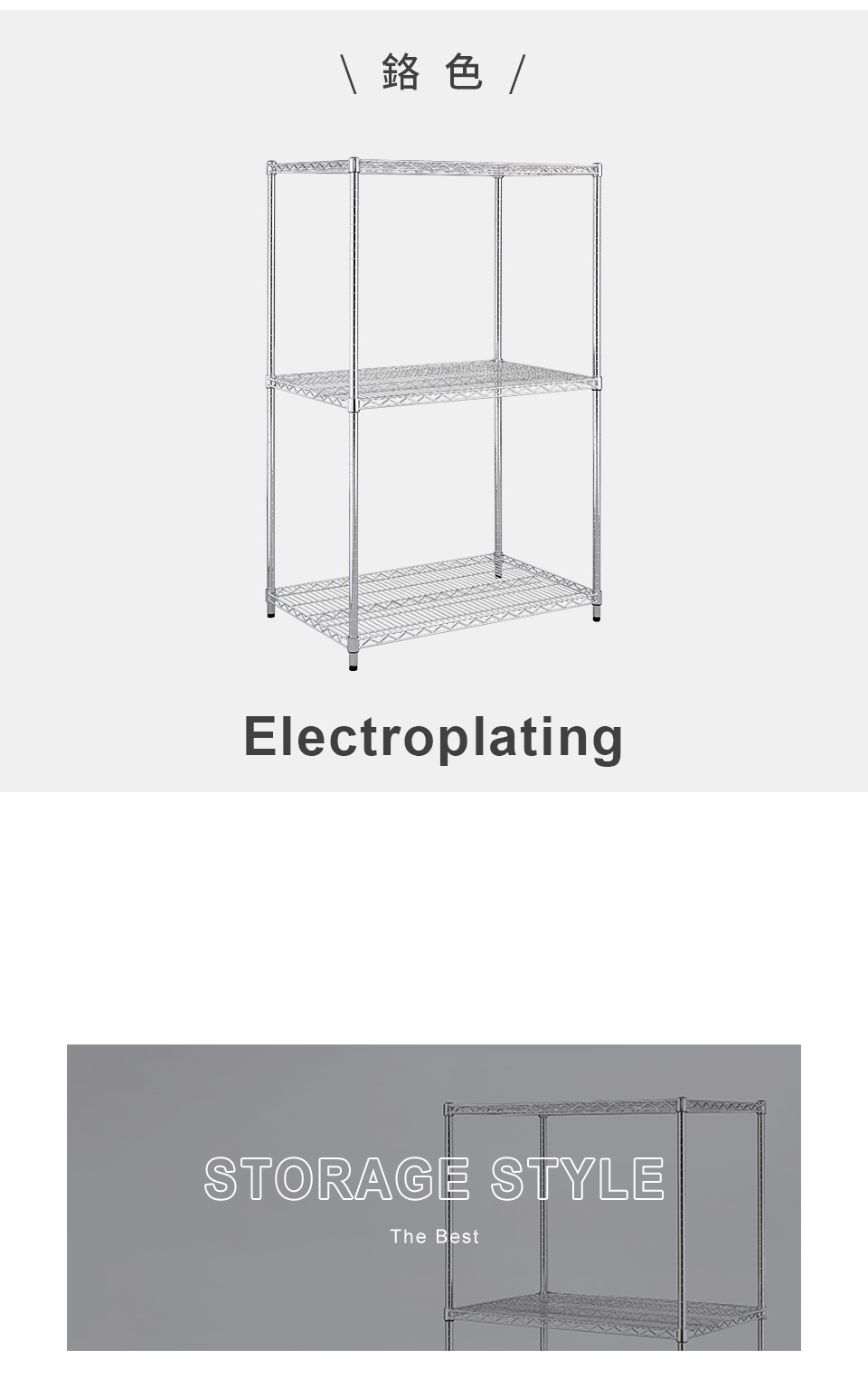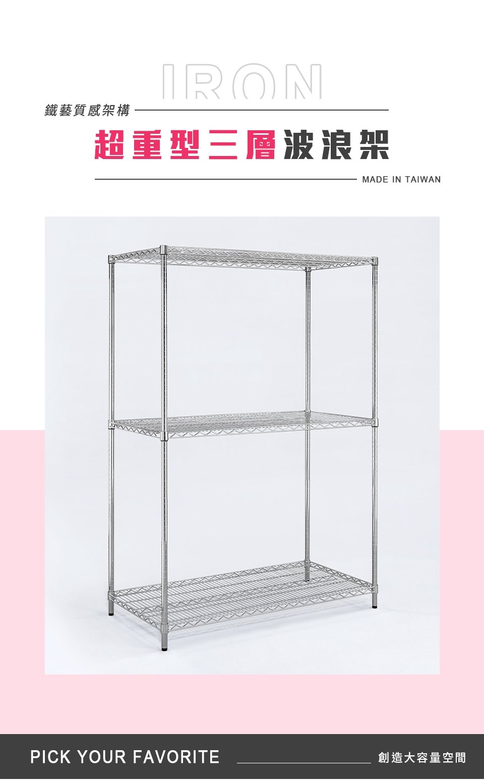質感鐵力士層架,嚴選MIT中鋼鐵材,表面多重鍍銘、電鍍處理,呈現高質感明亮色澤,防鏽抗腐蝕、承重力強,堅固耐用!