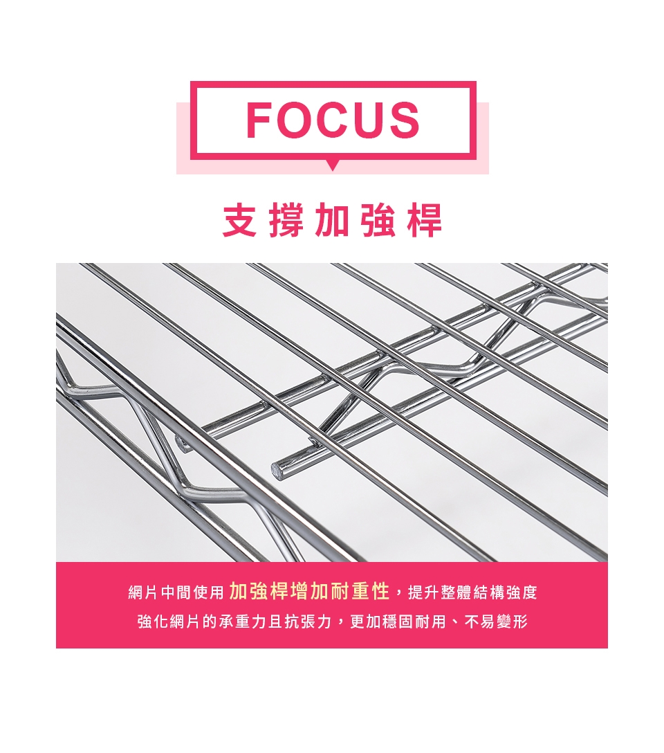 ✓ 高承重層網,單層靜態平均荷重可達220kg,安心放置、穩固耐用。